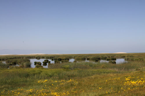 上午10時許,我們來到了此次活動的第一個目的地——小泊湖,我們將從這里開始徒步穿越牧區,走近青海湖。這一路,雖然走的很累,但是周圍的風景確實很美。我們走過了沙丘和濕地,潔白的沙地讓人有上去打個滾的沖動,而那一片隱藏在高原之上的濕地中,黃色野花點綴其間,間或有幾只鳥飛過,美麗的風景使人忘卻了勞累。經過大約一小時的行走后,我們終于走到了美麗的青海湖畔。在湖邊同事們做的第一件事情不是休整,而是挽起褲腳走進青海湖,率先到達的男同事們已經開始打起了水仗,最后抵達的人便及女同事們則淋成了落湯雞。在湖邊嬉戲、休整后,進行了團隊游戲環節。在游戲過程中,我們領會到了團隊的力量——只有互相幫助,才能共同完成任務。