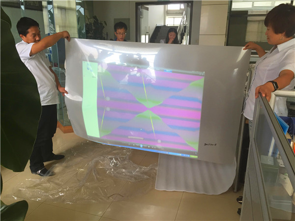 盡管沒有專門的調試場所,公司員工在集團二樓的過道、走廊架起了投影機,拉起了調光膜,對其進行一遍又一遍的調試。因為調光膜是新型產品,所以在沒有實驗以前不知道會有什么樣的效果,這就需要工作人員對其進行反復的實驗,確保投影畫面達到最清晰的效果,給客戶一個滿意的答復。