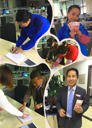 為了使員工的父母能夠在重陽節當天感受到企業和工會的關愛, 9月21日重陽節當天下午,工會工作人員專程前往集團,將慰問金發放到每一位員工的手上。“這是工會專門為老人家準備的福利,請大家轉達工會對老人的祝福,把錢送到父母的手中。”工作人員不時跟大家說明。一位員工領完慰問金后非常感慨地說道:“我的老父親今年已經72歲了,我這就打個電話給他們,說我的單位給他們發錢了!”另一位員工說“逢年過節的時候,單位都給我們發福利,但是給父母發福利的,我這還是頭一回領,真的很感謝你們!”