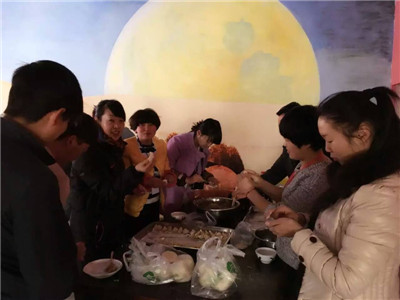 上午九點半,敦煌公司全體員工就在月牙泉小鎮金砂酒坊開始了緊張的籌備工作,拌餡兒、洗餐具,敦煌公司工作人員忙得不亦樂乎。準備工作完成后,大家紛紛拿出自己的看家本事,集體動手,不一會兒,一盤盤皮褶細致、光滑精致的餃子熱氣騰騰的出鍋了。