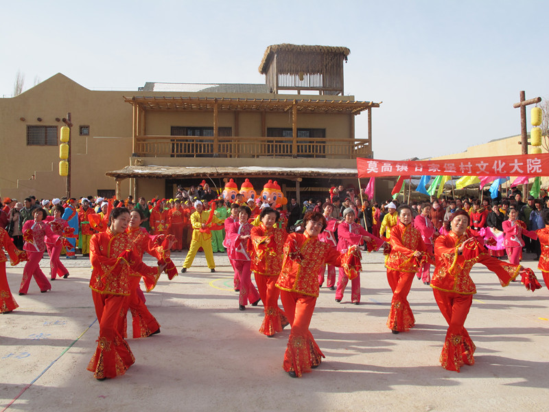長長的彩綢舞起來,紅紅的手絹轉起來。下午1時,月牙泉小鎮的中心廣場上,早已人山人海,前來觀看秧歌展演的人們把中心街圍得水泄不通。大家臉上都充滿了笑容,小孩子們更是興奮異常。“加油2016·優秀傳統秧歌展演”在喜慶歡快的樂曲聲中拉開序幕。