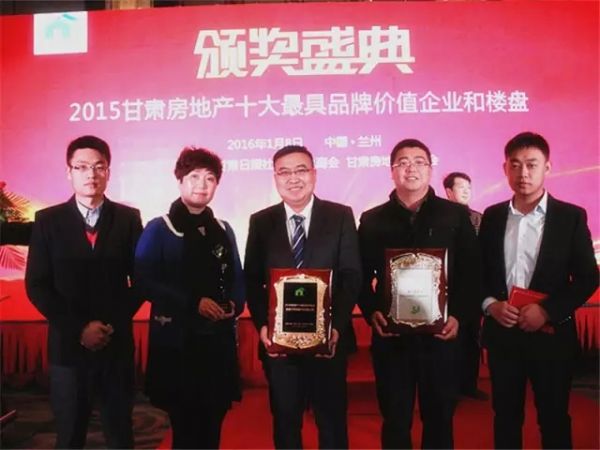 2016年1月8日,甘肅房地產(chǎn)業(yè)界年度盛事——“2015甘肅房地產(chǎn)十大最具品牌價(jià)值企業(yè)、樓盤”評(píng)選活動(dòng)頒獎(jiǎng)典禮在蘭州萬(wàn)達(dá)文華酒店成功舉辦。敦煌千年古城開發(fā)有限公司同時(shí)攬得“2015甘肅房地產(chǎn)十大最具品牌價(jià)值企業(yè)”和“2015甘肅房地產(chǎn)十大最具品牌價(jià)值樓盤”兩項(xiàng)大獎(jiǎng)。
