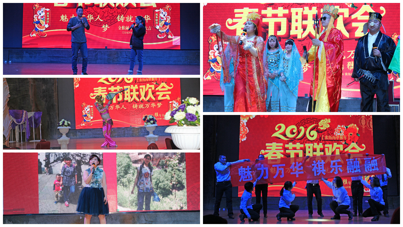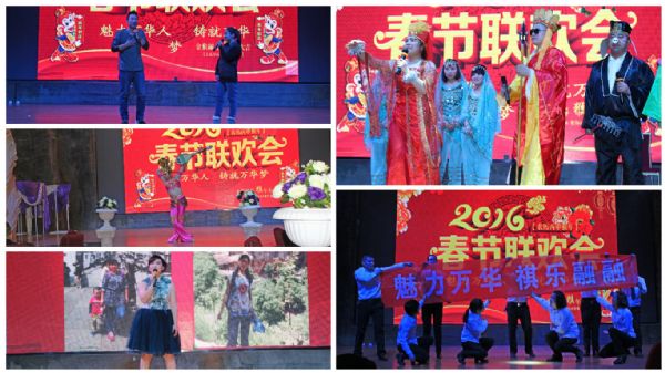 晚會(huì)的開(kāi)場(chǎng)節(jié)目“草裙舞”由2015年經(jīng)常合作的廣告公司的朋友們帶來(lái),她們青春熱情,在歡快的音樂(lè)中熱場(chǎng),將大家從寒冷的高原帶到了溫暖的海濱。獵豹銷售部的李秋雁、祁吉光和王亞斌合唱的歌曲“愛(ài)”讓大家感受到了有愛(ài)的生活多么美好。敦煌公司同事郭麗專業(yè)的舞蹈“飛天”,詮釋了敦煌文化藝術(shù)的代表形象,飄逸、端莊。售后服務(wù)部員工的“奔跑吧,兄弟”與當(dāng)下流行的綜藝節(jié)目相契合,體現(xiàn)了售后員工積極進(jìn)取,團(tuán)結(jié)協(xié)作的精神。傳祺銷售部的“廣播操”表演,歡快熱烈,不同風(fēng)格的數(shù)段音樂(lè),或賣萌,或搞笑,或嚴(yán)肅,或可愛(ài),在舞蹈結(jié)束時(shí),還打出“魅力萬(wàn)華 祺樂(lè)融融”的橫幅,巧妙地將晚會(huì)與所經(jīng)營(yíng)的主創(chuàng)品牌——傳祺汽車元素融為一體。行政人事部曹勵(lì)高亢嘹亮的歌曲《帶我到山頂》,送出了對(duì)父母的祝福。傳祺銷售部的小品“西游記歪轉(zhuǎn)”創(chuàng)意十足,通過(guò)杜撰唐僧師徒取經(jīng)路上擬放棄取經(jīng)任務(wù),如來(lái)佛祖不同意,便接受了女兒國(guó)國(guó)王贈(zèng)送的代步工具“傳祺GS4汽車”,從而,提前完成取經(jīng)任務(wù)的故事。詼諧的表演,豐富的服裝語(yǔ)言將晚會(huì)帶到高潮。財(cái)務(wù)部的舞蹈《小雞小雞》,憨態(tài)可掬,財(cái)務(wù)部“女將”的風(fēng)采又一次向大家完美展示。行政人事部冶海軍和李英的相聲《說(shuō)說(shuō)身邊事》,再一次將晚會(huì)推向歡樂(lè)的頂峰。最后的壓軸節(jié)目由售后服務(wù)部車間的員工帶來(lái)“瀟灑走一回”,舞蹈歡快,節(jié)奏感強(qiáng),小伙子們通過(guò)肢體語(yǔ)言,表現(xiàn)出盡管工作辛苦,但依然要瀟瀟灑灑生活的主題思想。