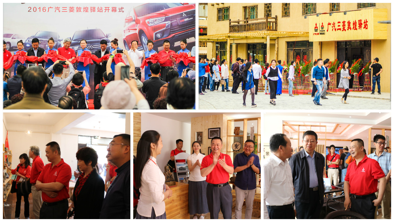 大漠史詩,璀璨絲路。5月30日早10時,在千年敦煌·月牙泉小鎮,激情澎湃的鼓舞拉開了廣汽三菱“絲綢之路敦煌驛站”啟動儀式的帷幕。敦煌市政協主席曹理,敦煌市委副書記、敦煌國家級文化產業示范園區管委會主任王永宏,敦煌市委常委、宣傳部部長、市政府副市長王愛國,敦煌市政府副市長劉洋,廣汽三菱汽車有限公司總經理友納文隆,廣汽三菱汽車有限公司副總經理兼三菱汽車銷售(中國)有限公司董事長杜志堅,三菱汽車銷售(中國)有限公司總經理宇佐美雄久,甘肅萬華實業集團副總經理宿曉中,上海金翅鳥文化旅游發展股份有限公司項目總監熊秀霞,以及廣汽三菱的各位車主代表和媒體朋友共同見證了敦煌驛站的盛大開幕。