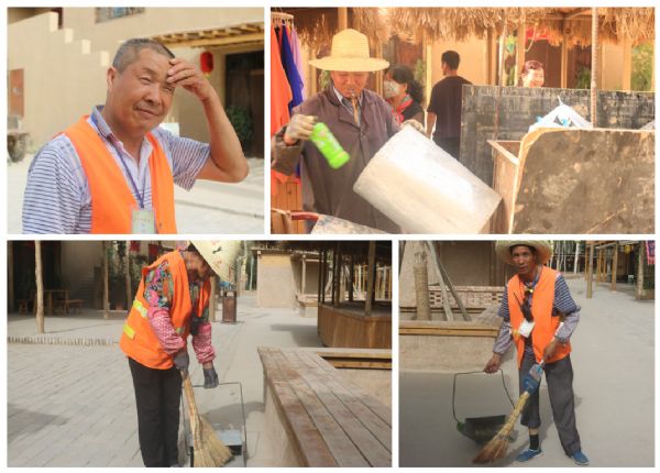 高溫炎熱的天氣,加上繁重的清掃任務,保潔工人的辛苦可想而知。被問及保潔工作苦不苦時,賈曉慶憨厚地笑道:“苦當然是苦,但是這工作總得有人做。看著大家行走在干凈的月牙泉小鎮,我們會覺得很開心。現在我都有職業病了,看到哪兒有煙頭、紙屑,就會撿起來。”