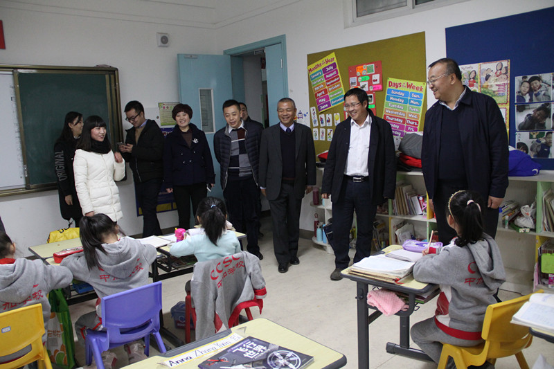 下午5時30分,王春丁董事長一行來到蘭州萬華中加國際學校,逐一參觀了學校報告廳、閱覽室、功能教室、臺球室、游泳館、籃球館、學生公寓和食堂等場所,萬華中加國際學校工作人員介紹了學校教學狀況。