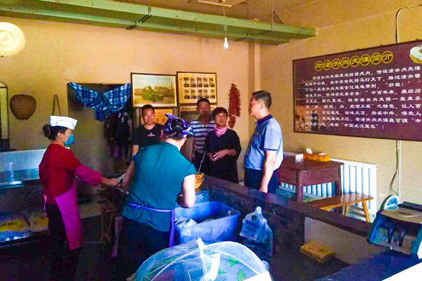 期間,復審組一行深入景區餐飲店鋪,圍繞店鋪環境衛生、證照持有、食品及食品原材料采購、索證套票、臺賬記錄、餐飲具清洗消毒、食品留樣管理等情況詳細了解,并認真聽取敦煌千年古城開發有限公司項目總監熊秀霞就景區商鋪食品安全檢查、檢驗等工作的匯報。