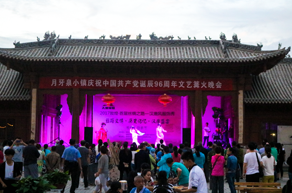 七月的太陽,絢麗多姿,熱情奔放;七月的黨徽,金光閃閃,光芒萬丈。7月1日21時,由千年敦煌·月牙泉小鎮主辦的“慶祝中國共產黨成立96周年文藝篝火晚會”在景區戲臺處隆重舉行。來自各地的游客、敦煌市民以及此次晚會的表演者們歡聚一堂,用精彩的表演和熱烈的掌聲共同慶祝黨的96歲生日,表達了對中國共產黨的熱愛之情。