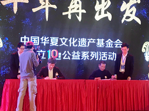 12月10日,中國華夏文化遺產(chǎn)基金會成立10周年公益系列活動在深圳五洲賓館舉行。活動現(xiàn)場,中國華夏文化遺產(chǎn)基金會副理事長高峰與敦煌千年古城開發(fā)有限公司董事長牛新偉簽訂了“二十一世紀(jì)新敦煌”項目合作協(xié)議。
