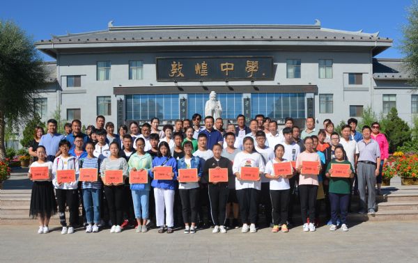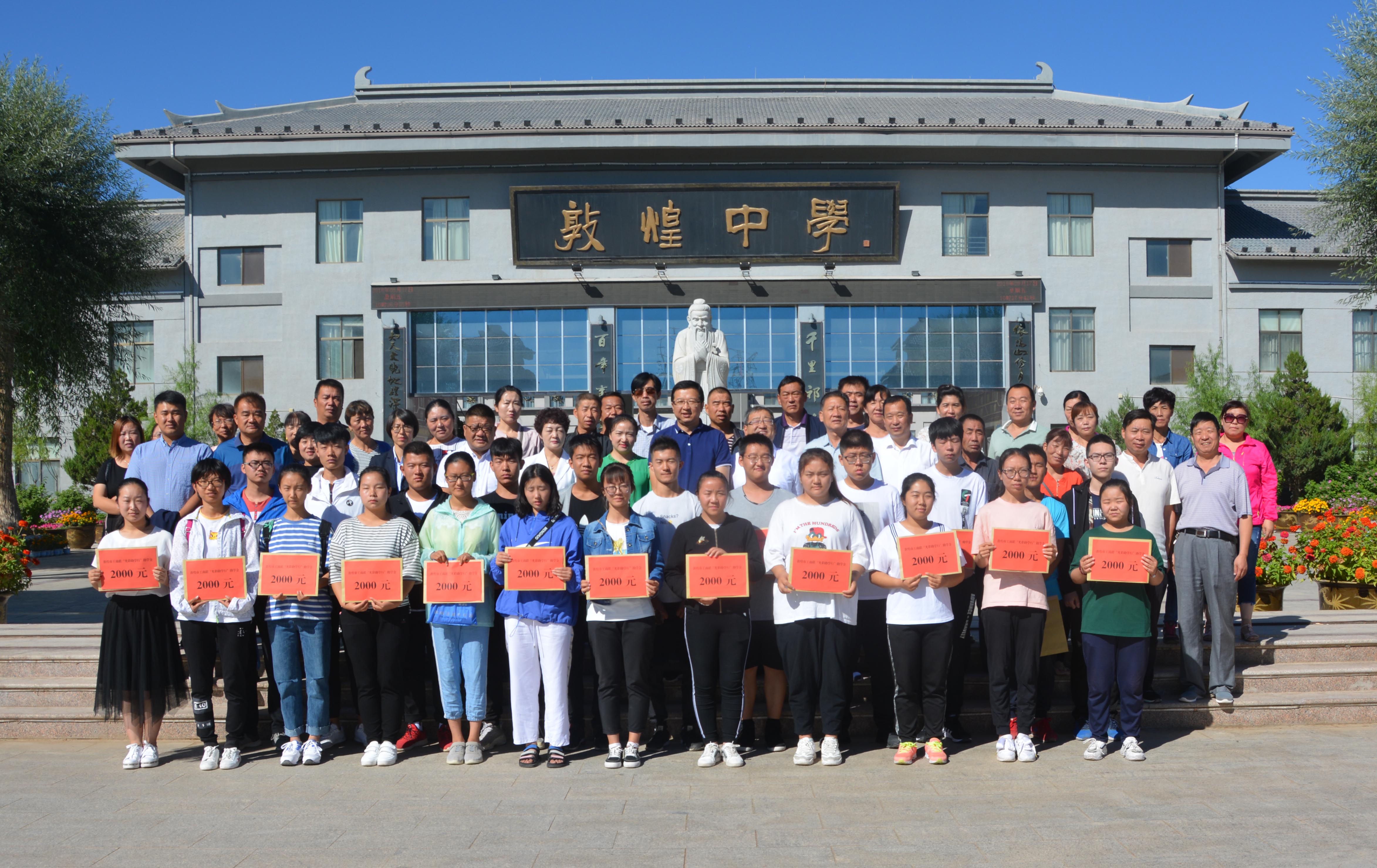 8月17日上午10時,敦煌市工商聯“光彩助學行”活動在敦煌中學舉行。敦煌千年古城文化發展有限公司副總經理牛英霓、甘肅絲路敦煌山莊酒店有限責任公司總經理杜亞東等9家企業和今年新考入大學的24名學生及家長參加了捐助活動。