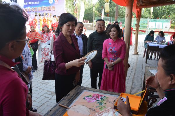9月26日下午4時,甘肅省婦聯黨組書記、主席周麗寧一行來到月牙泉小鎮,視察景區中心街正在舉行的“首屆婦女文化交流系列活動——隴原巧手展示展演”,認真觀摩了來自全國各地手工編織界的業內人士及“巧手們”的指尖技藝。甘肅萬華實業集團總經理、敦煌千年古城文化發展有限公司董事長牛新偉,甘肅萬華實業集團副總經理宿曉中陪同考察。