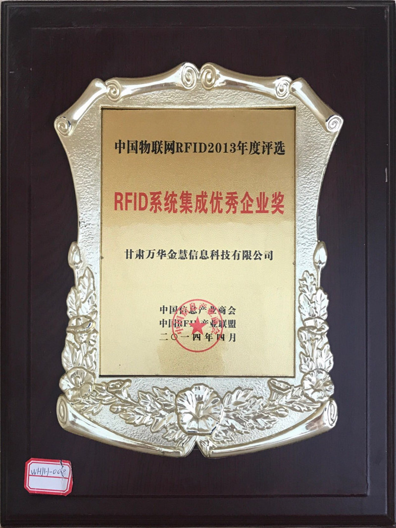 2014年4月 中國信息產業商會 中國RFID產業聯盟 RFID系統集成優秀企業獎