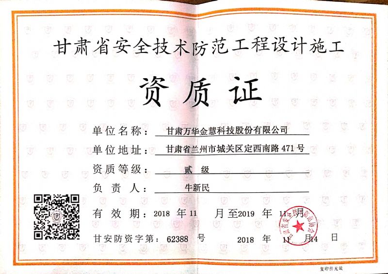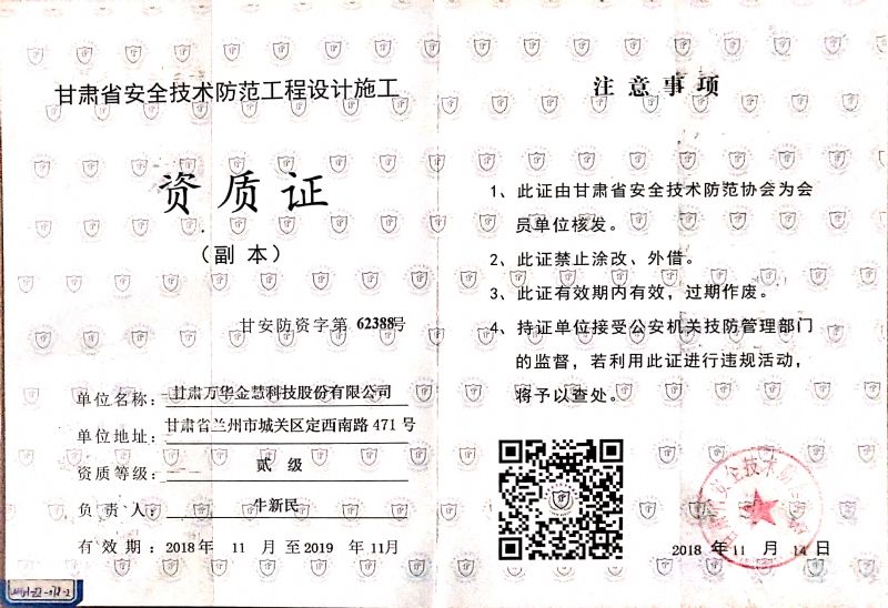 甘肅省安全技術防范協會 甘肅省安全技術防范工程設計施工資質證