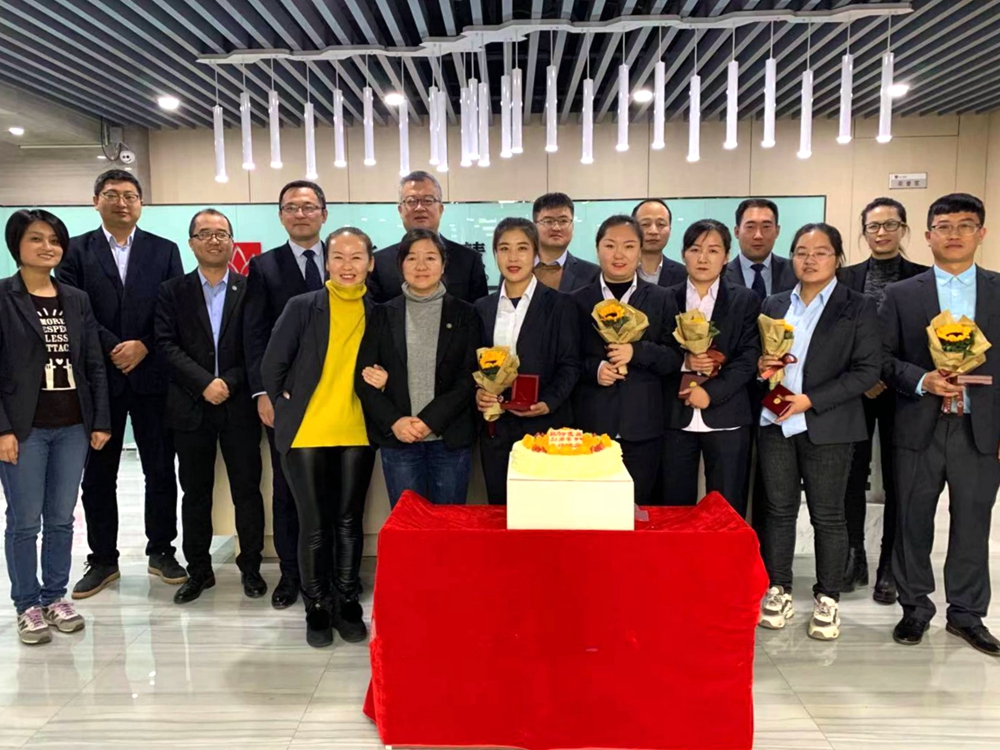 甘肅雙創常務副總經理孫飛虎為新晉司齡5年和10年老員工授勛并合影