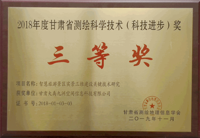 會上,甘肅省測繪地理信息學會理事長王有弢宣讀了甘肅省測繪地理信息學會“2018年度科學技術獎”獎勵的決定。由大禹九洲參評的“智慧旅游景區實景三維建設關鍵技術研究”項目榮獲2018年度甘肅省測繪科學技術(科技進步)三等獎,“S28平涼市靈臺至華亭高速公路基礎控制測量與航測成圖測繪工程”項目榮獲2018年度甘肅省測繪科學技術(優秀工程)金獎,“合水縣國土資源局不動產登記平臺建設及數據整合采購項目”榮獲2018年度甘肅省測繪科學技術(優秀工程)銅獎。