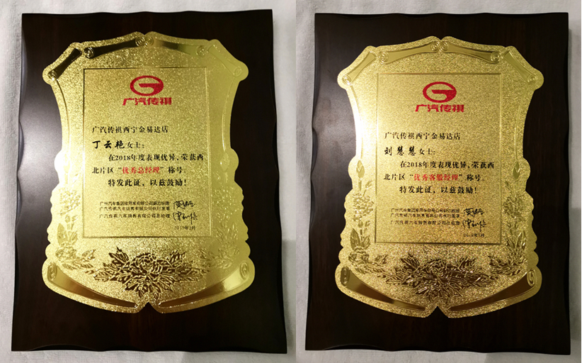 會議回顧了廣汽傳祺經銷商2018年在西北地區的業績并對2019年商務政策作詳細解讀,通過對市場大勢的分析,指明了廣汽傳祺未來的戰略重點與發展方向。青海金易達“優秀總經理”“優秀客服經理”兩項榮譽的獲得是傳祺廠家對青海金易達總經理丁云艷、客服經理劉慧慧過去一年業績及服務的肯定, 2019年青海金易達將繼續秉承優秀的理念,實現公司業績的進一步飛躍。