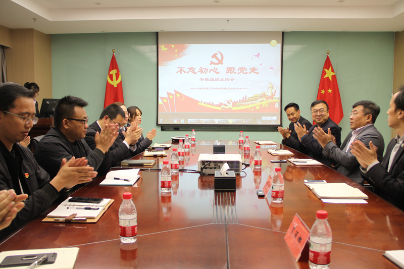 會后,集團黨支部書記牛新民與各位黨員合影留念并為黨員們發放了紀念品。