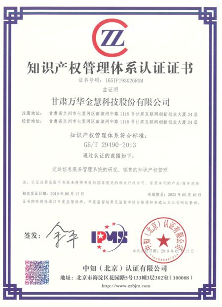 5月20日,甘肅萬華金慧科技股份有限公司首次通過《企業(yè)知識產權管理規(guī)范》國家標準審核認證,并收到由中知(北京)認證有限公司發(fā)布的《知識產權管理體系認證證書》。這意味著萬華金慧在知識產權領域得到重要認可,在知識產權方面得到進一步規(guī)范,在綜合競爭力方面得到進一步提升。