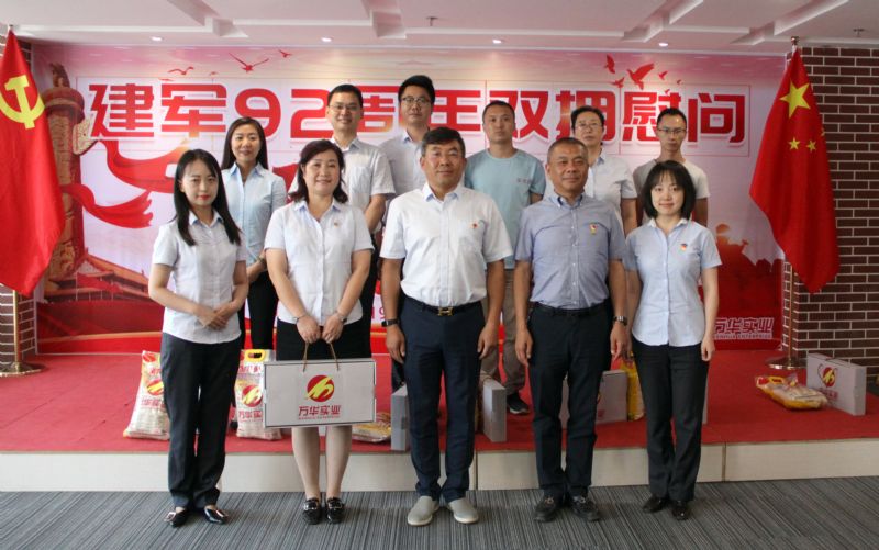 7月30日上午,為迎接八一建軍節的到來,萬華集團黨支部開展了“不忘初心、牢記使命”雙擁慰問主題黨日活動。萬華集團黨支部書記、董事長牛新民,總經理牛新偉,監事會主席魏敏娟,集團副總經理兼董事會辦公室主任宿曉中,集團副總經理兼開發部總經理杜牧拉,集團財務總監王鑫,甘肅大禹九洲測繪地理信息有限公司總經理岳増琪、副總經理楊晉強,甘肅萬華金慧科技股份有限公司董事會秘書王鑫出席活動,向現場23名退役軍人和軍人家屬送去節日的關懷和慰問,紀念中國人民解放軍建軍92周年。