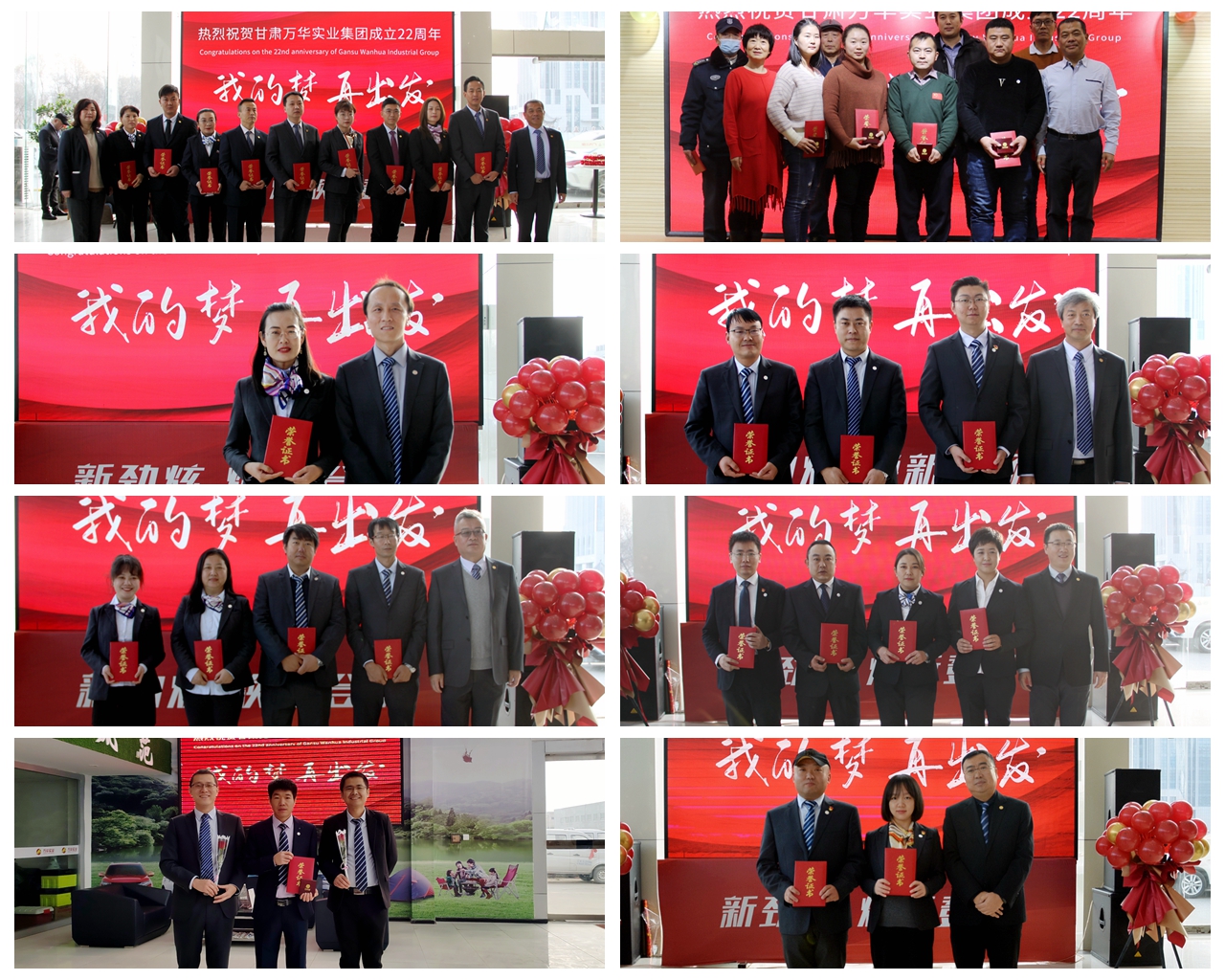 12月11日上午10時,甘肅萬華實業集團舉行成立22周年紀念活動。萬華集團總經理牛新偉,副總經理、董事會辦公室主任宿曉中,監事會主席魏敏娟,副總經理、開發部總經理杜牧拉,財務管理中心財務總監王鑫、副總監牛英霓,甘肅萬華金慧科技股份有限公司總經理施強、監事會主席陳永華,甘肅萬華汽車銷售有限公司總經理曹磊,甘肅金盛汽車銷售服務有限公司執行董事盛斌,甘肅萬華職業培訓學校校長、甘肅雙創互聯網科技有限公司常務副總經理孫飛虎,以及下屬單位部分高管,蘭內公司新晉老員工出席活動,共同見證這一重要時刻。