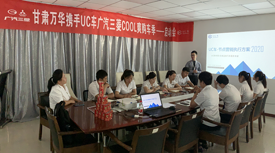 2020年7月13日,甘肅萬華汽車銷售有限公司攜手UC汽車,啟動為期一周的節點營銷活動。此次活動由廣汽三菱區域發起,甘肅萬華全體銷售人員通過“邀約話術”“話術技巧”“談判技巧”“逼單技巧”四個方面的培訓,利用一周的時間對潛在客戶進行邀約成交,助力提升7月銷量。
