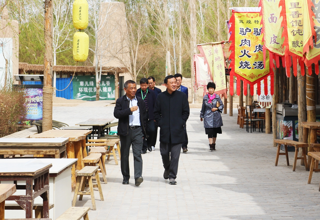 4月8日,中國文化傳媒集團有限公司黨委書記、董事長劉強一行4人來到千年敦煌·月牙泉小鎮民俗文化旅游景區,就千年敦煌項目整體布局規劃開展實地考察。敦煌千年古城文化發展有限公司董事長牛新偉、項目總監熊秀霞現場接待。