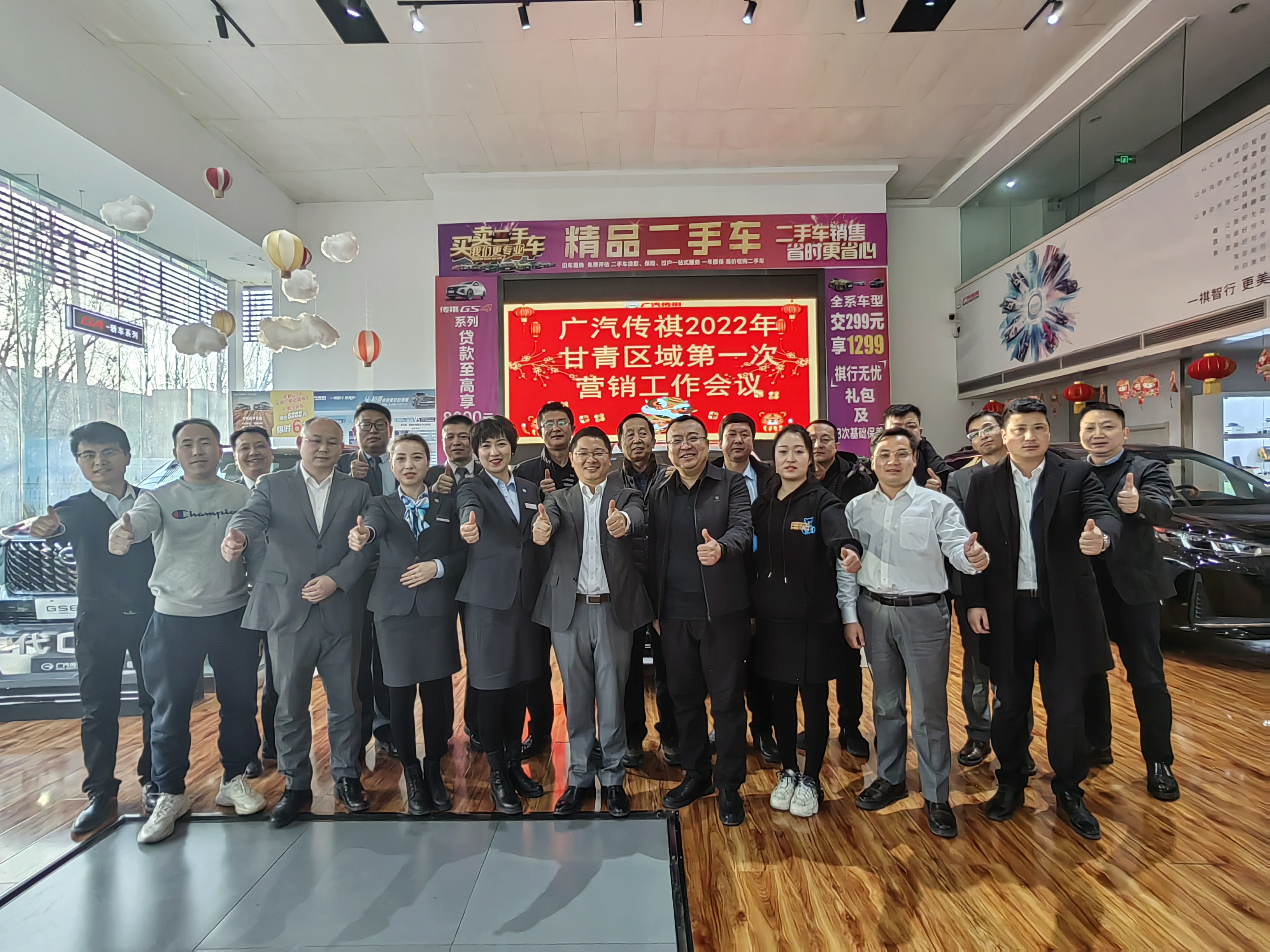 2月13日下午2時30分,廣汽傳祺2022年甘青區域第一次營銷工作會議在青海金易達汽車銷售服務有限公司召開。廣汽傳祺西北營銷主任馮少華,甘青區域經理秦雪雷,甘青地區10家經銷商總經理,青海金易達汽車銷售服務有限公司執行董事宿曉中、總經理趙艷麗參會。
