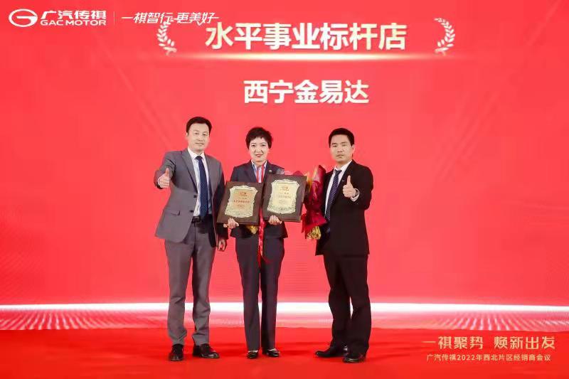 此次會議,青海金易達共榮獲2021年度廣汽租賃全國優秀店、2021年度水平事業標桿店、西北二網銷售貢獻獎,銷售經理馬智淵榮獲“優秀銷售經理”、水平事業經理魏美恒榮獲“優秀水平事業經理”、網銷主管馬艷妮榮獲“優秀網銷經理”、二網經理楊德銀榮獲“優秀二網經理”。廣州汽車集團乘用車有限公司副總經理兼廣汽傳祺汽車銷售有限公司總經理李勇說:“2022年,廣汽傳祺將堅持以市場、客戶需求為中心,在營銷端持續圍繞八大力開展工作,攜手經銷商全力開拓市場,持續為客戶打造高價值的出行體驗,實現互利共贏!”廣汽傳祺西北營銷中心主任馮少華在匯報中多次提到青海金易達在新媒體、二網、水平事業等工作上的優異表現和突出業績。青海金易達總經理趙艷麗作為2022年1月西北大區提車與銷售第一名的優秀經銷商代表,在會議上作了《踔勵奮發啟新程 賡續前行譜新篇》的主題演講。新的征途已經開啟,站在“十四五”規劃和雙碳目標的新風口,面對混動元年的新征程,青海金易達將緊跟廣汽傳祺主機廠步伐上下一心,共創銷量和盈利持續攀升新高峰。