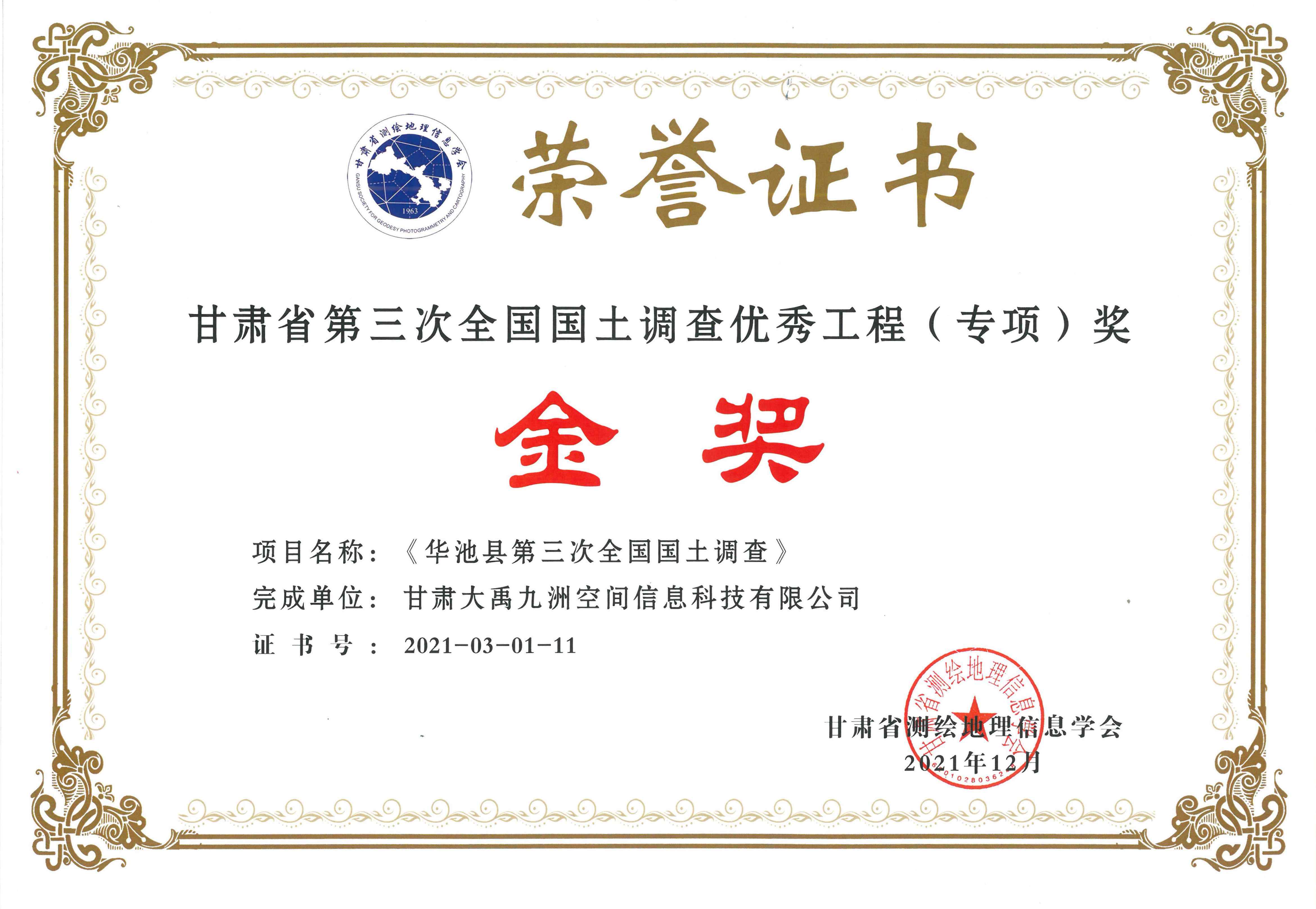 甘肅省第三次全國國土調查優(yōu)秀工程(專項)獎金獎